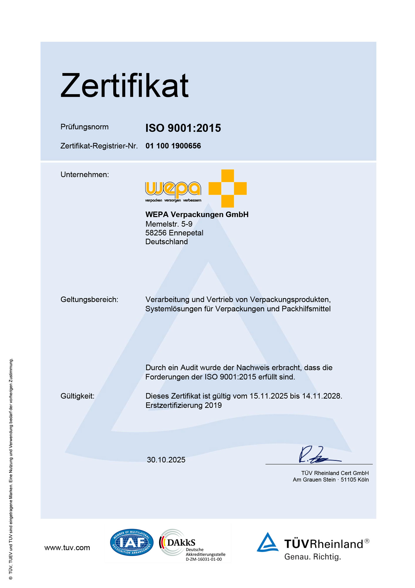 Wepa Verpackungen GmbH ist zertifiziert